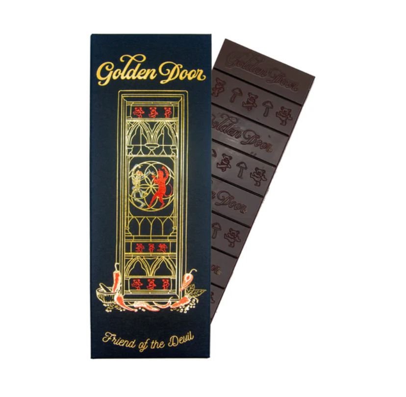 Embrace bold flavors with the Golden Door Friends Of The Devil Chocolate BarĀ a decadent blend of rich, premium cocoa with daring, complex notes that awaken the senses. Crafted for those who enjoy adventurous and memorable chocolate experiences, each bite delivers a smooth, velvety texture with subtle undertones that intrigue and delight.
